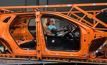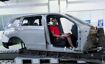 滑臺碰撞室成立于2008年,承擔(dān)著法規(guī)強(qiáng)檢、出口認(rèn)證、約束系統(tǒng)匹配、C-NCAP鞭打試驗、整車兒童乘員保護(hù)試驗等多項工作。試驗室總長135米,寬24米,占地3200余平米,擁有兩臺三菱重工加速式模擬碰撞臺車,截至2021年底共完成各類臺車碰撞試驗28000余次。